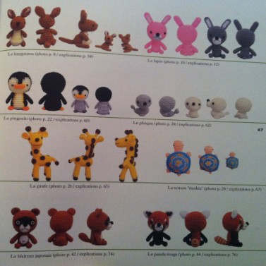 Il y a au choix : un singe, un panda, un éléphant, un canard, un ours, un renard, un kangourou, un lapin, un pingouin, un phoque, une girafe, une tortue, un blaireau japonais, ou un panda rouge.