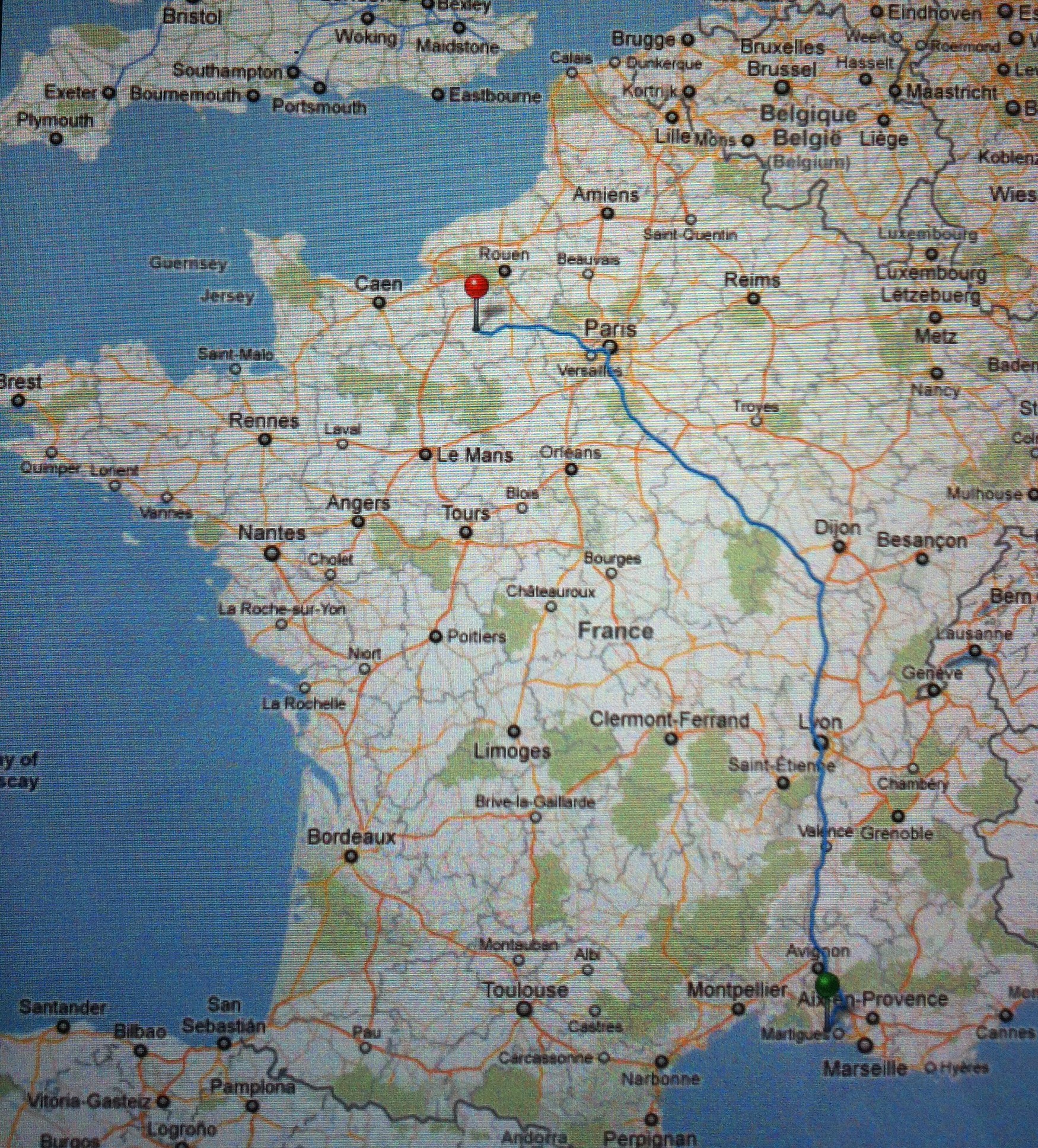Nous voici donc en route pour une dizaine d’heures de trajet, 890 km à parcourir, la France à traverser…. pour vous donner une idée :