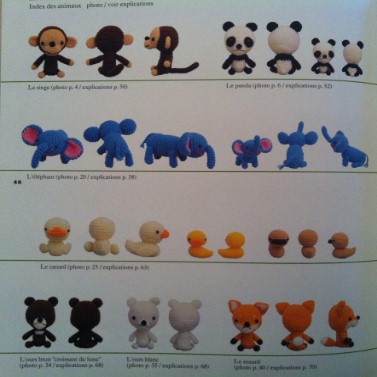 Il y a au choix : un singe, un panda, un éléphant, un canard, un ours, un renard, un kangourou, un lapin, un pingouin, un phoque, une girafe, une tortue, un blaireau japonais, ou un panda rouge.