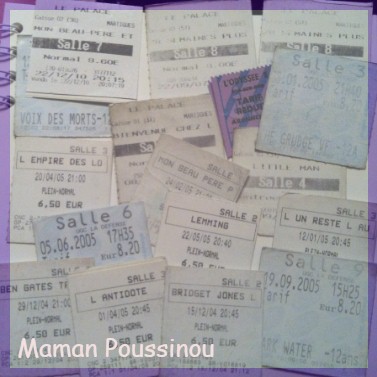 Et comme je suis très matérialiste, attachée aux souvenirs, et bien j’ai gardé tous ces petits tickets de cinéma, symboles de tous les films que nous sommes allés voir, je les garde précieusement dans mon portefeuille.