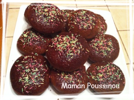 Nous avons donc fait des petits cakes ronds, au chocolat, ananas et raisins secs (et oui, rien que ça).