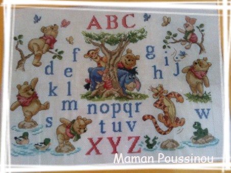 Je suis un peu superstitieuse alors pendant de longs mois, je me suis contentée de regarder, noter, faire des listes, des comparaisons, et puis nous nous sommes mis au travail. J’ai fait plusieurs éléments de la décoration de sa chambre, des tableaux en peinture, au point de croix (il y a toujours la toise Winnie qui n’est pas installée, je cherche du beau galon orange et n’ai toujours pas trouvé mon bonheur…), décoré son coffre à jouets à roulettes (fait par mon Pôpa) et il me reste encore sa bibliothèque à personnaliser (elle aussi fabriquée par mon Pôpa). J’ai également fait des doudous au crochet, une couverture,…