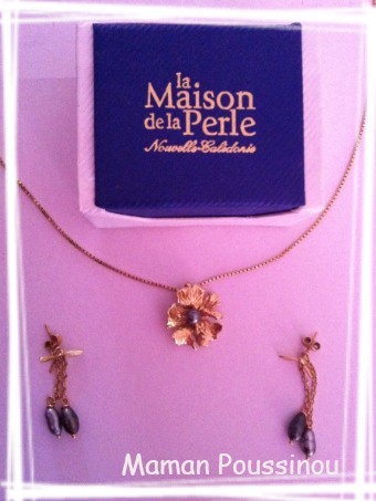 -> Cette parure avec des perles de Tahiti, que Poulet m’a offerte pendant notre Voyage de Noces en Nouvelle Calédonie (nous avions bien cherché des perles de Nouméa mais n’avions rien trouvé)