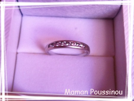 -> Mon « alliance » avec des faux diamants, offerte à Noël dernier. Comme celle que je voulais, sauf que évidemment, elle ne peut pas remplacer la VRAIE alliance, celle que Poulet m’a passée à l’annulaire gauche il y a maintenant plus de 4 ans. Alors, elle est juste devant la VRAIE alliance, l’unique.