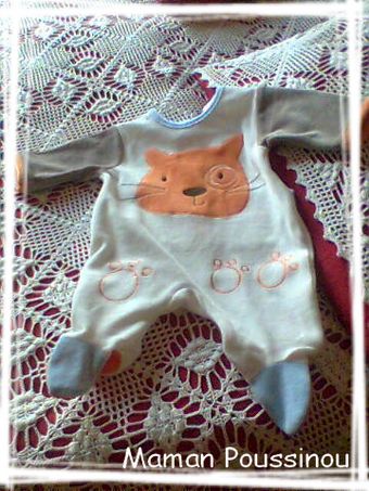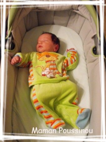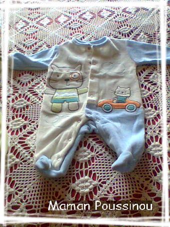 Avant l’arrivée de Poussin je m’étais fait plaisir en achetant pas mal de petites grenouillères trop mimis, taille naissance et un mois…. Avec le recul, j’ai quand même eu de la chance qu’il puisse mettre la taille naissance quelques semaines.