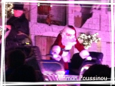 Voilou, désolée pour la qualité des photos…. Poussin n’a pas voulu se faire prendre en photo avec le Père Noël, il avait bien trop peur ! Mais il nous en a parlé toute la soirée, je pense que ça restera pour lui un chouette souvenir !