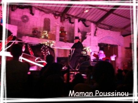 Et pour terminer, l’arrivée du Papa Noël sur sa calèche tirée par un cheval. D’ailleurs, ça me fait penser que nous avons aussi eu la joie de pouvoir voir un vrai renne de Laponie. Juste magnifique comme animal !