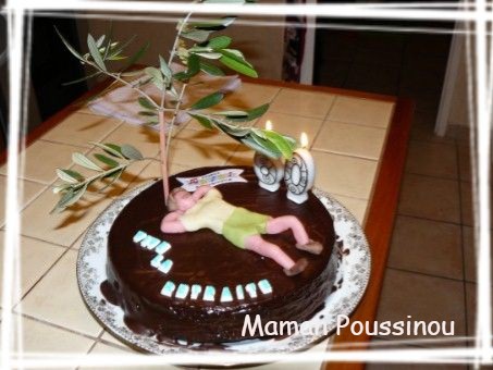 Pour fêter ça, comme il se doit, je m’étais amusée à lui faire un gâteau au chocolat, décoré exprès et de façon toute simple, pour un futur ou jeune retraité.