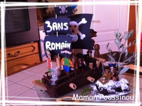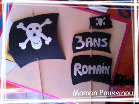 Du coup, je vais vous montrer les différents éléments que j’ai réalisés pour l’anniversaire de Poussin sur le thème des pirates :