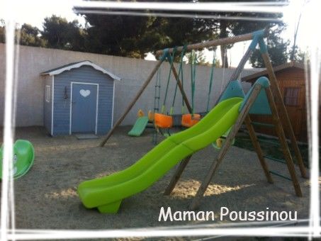 La cabane bleue ? C’est du bois lasuré en bleu, c’est moi qui l’ai faite l’année dernière pour Poussin 🙂 j’en suis très fière !!!