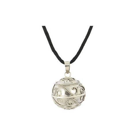 C’est un petit bijou en forme de boule en argent qui serait originaire d’Indonésie et fabriquée par des artisans, spécialement pour les femmes enceintes. A l’intérieur de cette boule il y a un petit instrument de musique qui émet un doux tintement à chaque mouvement de la maman. Il se porte au niveau du ventre et servirait à apaiser et rassurer bébé in utero, un bébé entend à partir de la 20ème semaine de grossesse, mais aussi après la naissance.