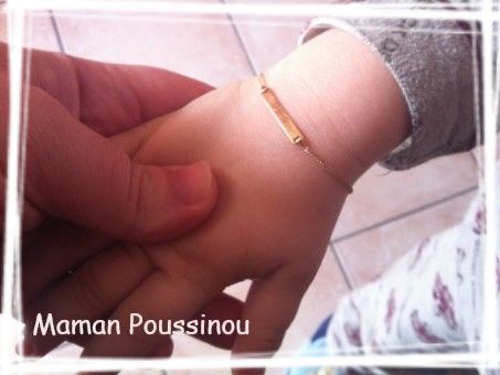 J’ai toujours trouvé mignon qu’un enfant/bébé ait une gourmette à son poignet. Aussi il était évident que Poussin aurait la sienne.