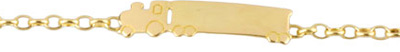 -> Une gourmette avec codon bleu et signe « garçon » sur plaque en or :