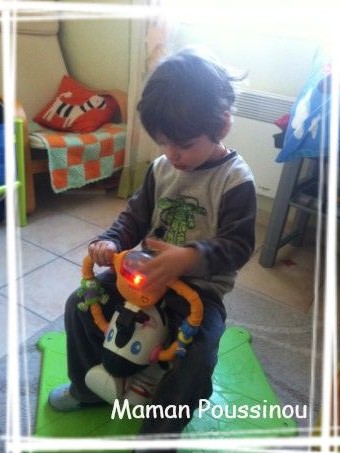 • il est conseillé de 12 à 36 mois, Poussin y joue encore à plus 3 ans (je pense qu’il est préférable d’attendre que l’enfant ait les 2 pieds qui touchent bien le socle pour le laisser jouer, sinon il pourrait facilement tomber)