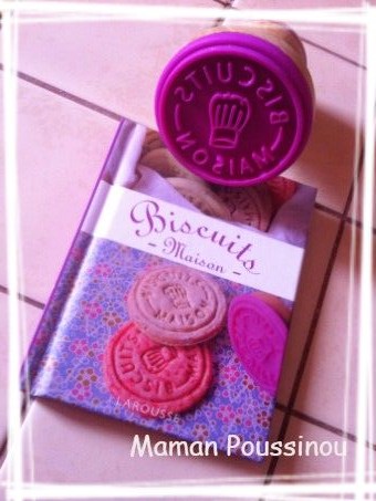 J’ai étalé la pâte sur 3-4 mm d’épaisseur, puis j’ai découpé des ronds (de la taille du tampon, c’est mieux… j’ai utilisé un verre).