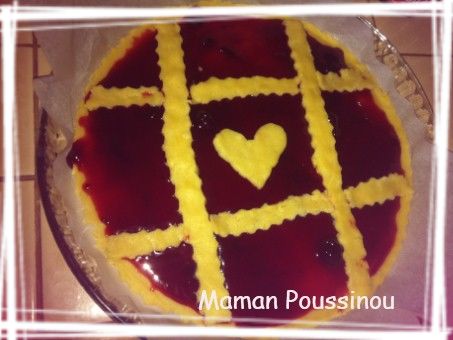 -> Une tarte sablée à la confiture (de framboise), comme on en trouve à la montagne, la recette est ici