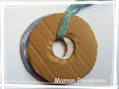 Et enfin passer un bout de laine, assez long entre les deux ronds, puis serrez fort et faites un nœud.