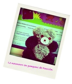 Le mois dernier il n’y a pas eu de défi home made pour moi, pour cause d’éclosion de Poussinet. Ce mois-ci pour le défi « home made » de Yolina du blog « Devine qui vient bloguer ? » j’ai voulu montrer à Poussin ce que je faisais, entre autre, pour m’occuper pendant les vacances quand j’étais petite : des nounours en pompons.