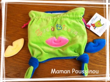 Enfin, je suis très satisfaite de ma trouvaille ! Encore aujourd’hui, Poussin s’amuse avec son sac à bisous en faisant des « bisous-bouche » à tout le monde, même à Kiki, notre chien et me rappelle que quand Poussinet est sorti de mon ventre, il avait quand même les bisous de maman le soir et que « c’était cro bien même si tu m’as manqué beaucoup maman ».