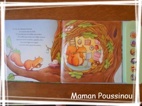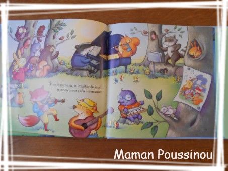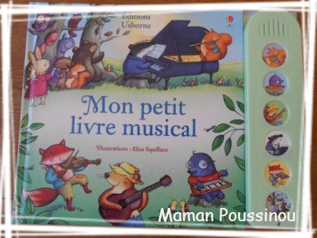 Des mélodies joyeuses et drôlement belles, des illustrations magnifiques et bien colorées. Ce petit livre a permis à Poussin de découvrir quelques instruments comme le métallophone.