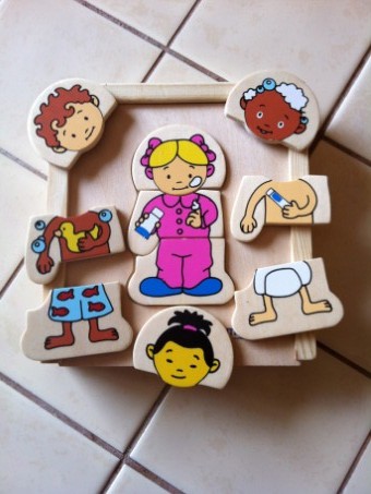 Et un petit jeu pour apprendre les vêtements pour Poussin (qui ne m’a pas laissé le prendre en photo cette fois tellement il était pressé d’y jouer).