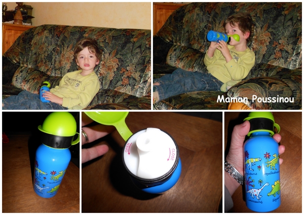 C’est bien plus classe qu’un biberon ou qu’une bouteille, et c’est hyper pratique, aussi bien à transporter, que pour boire dedans pour un Poussin comme le mien ! Mais attention, en matière de gourde, j’ai des exigences, surtout pour les enfants !!! Pas de plastique car ça garde les odeurs, surtout pas de BPA, légère, pas trop grande ni trop petite, colorée, amusante, incassable (c’est mieux), qui ne fuit pas…