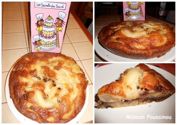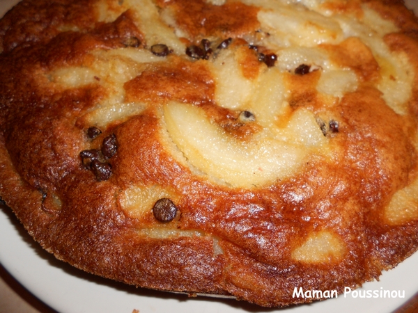 N’ayant pas encore fait les courses j’avoue que nos placards sont assez vides… j’ai donc fait avec les moyens du bord ! J’ai trouvé de la poudre d’amande (pas périmée, un exploit !!), des pépites de chocolat, mais je n’avais plus de farine, juste de la poudre de maïs. Il me restait des poires, c’était parti pour une recette quasi improvisée.