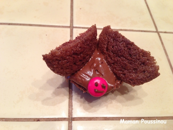 Étalez une petite cuillère de pâte à tartiner au chocolat sur le muffin.