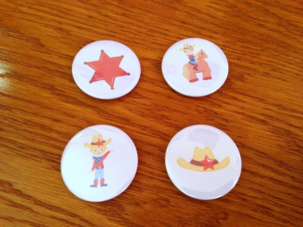 Ici, nous avons eu la chance de recevoir les badges « cow-boy », histoire de rester dans l’esprit de Toy Story parce que Poussin est de nouveau à fond dans les 3 épisodes. En plus, j’ai déjà trouvé le thème de son anniversaire en janvier, ce sera les cow-boy, alors c’est parfait !!!