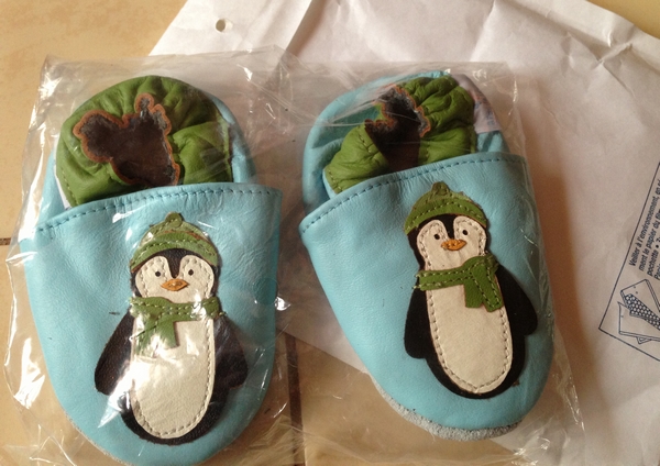 Pour Poussinet j’ai choisi la paire « Martin le pingouin », parce que l’hiver approche et que leur petite bouille était attachante avec leur écharpe autour du coup. En plus ils sont bleus, alors que demander de mieux ?
