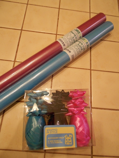 – 1 rouleau de bolduc de chaque couleur (ici un lot de 3 avec des noeuds en plus 2.70€)