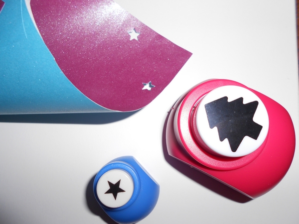 -> Avec une perforatrice plus grosse découper 24 motifs (ici des sapins) afin de numéroter les cornets