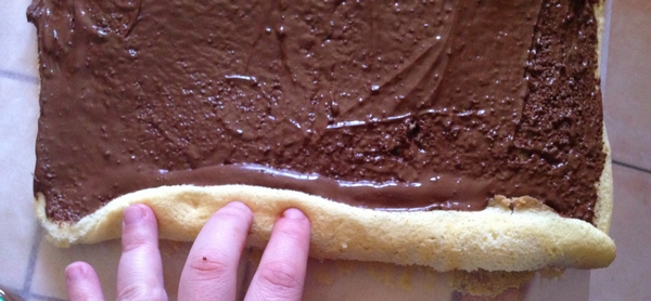 -> Commencer à le rouler de façon assez serrée en le maintenant bien. Le démarrage est très important. Rouler ensuite tout le reste du gâteau