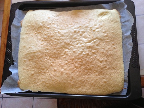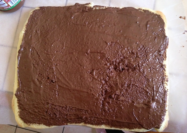 -> Ajouter la confiture ou ce que vous voulez comme garniture (c’est important d’être assez rapide pour que le gâteau ne refroidisse pas trop afin de pouvoir le rouler et qu’il tienne surtout)