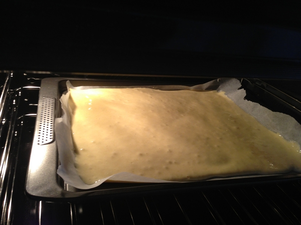 -> Verser la préparation sur une plaque rectangulaire recouverte de papier sulfurisé
