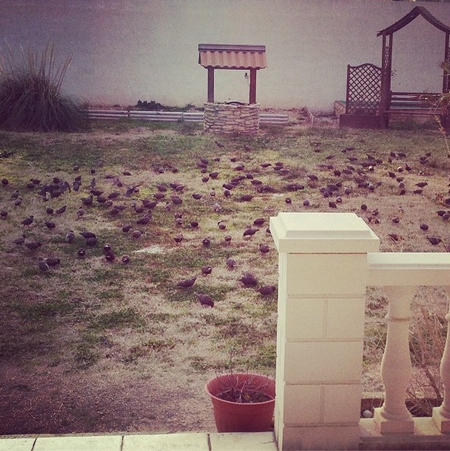 - Et cette après midi notre jardin a connu une drôle d’invasion… des centaines d’oiseaux bizarres, on se serait cru dans un remake du film d’Alfred Hitchcock… beurk beurk beurk !