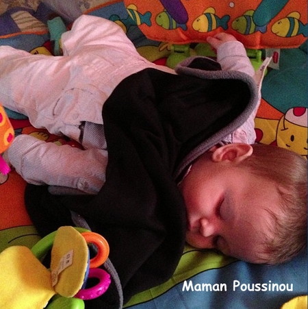 - Poussinet arrive enfin à faire des siestes régulièrement ailleurs que dans mes bras !! Sur son tapis d’éveil mais aussi dans son lit mais jamais plus de 30 minutes…